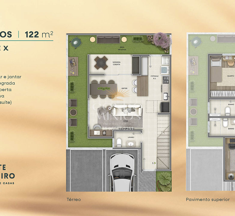 Excelente casa duplex de 122m², com dois quartos, sendo uma suite. Casa com sala de estar e jantar, cozinha integrada, varanda e área privativa. Ideal para você que busca por mais liberdade.