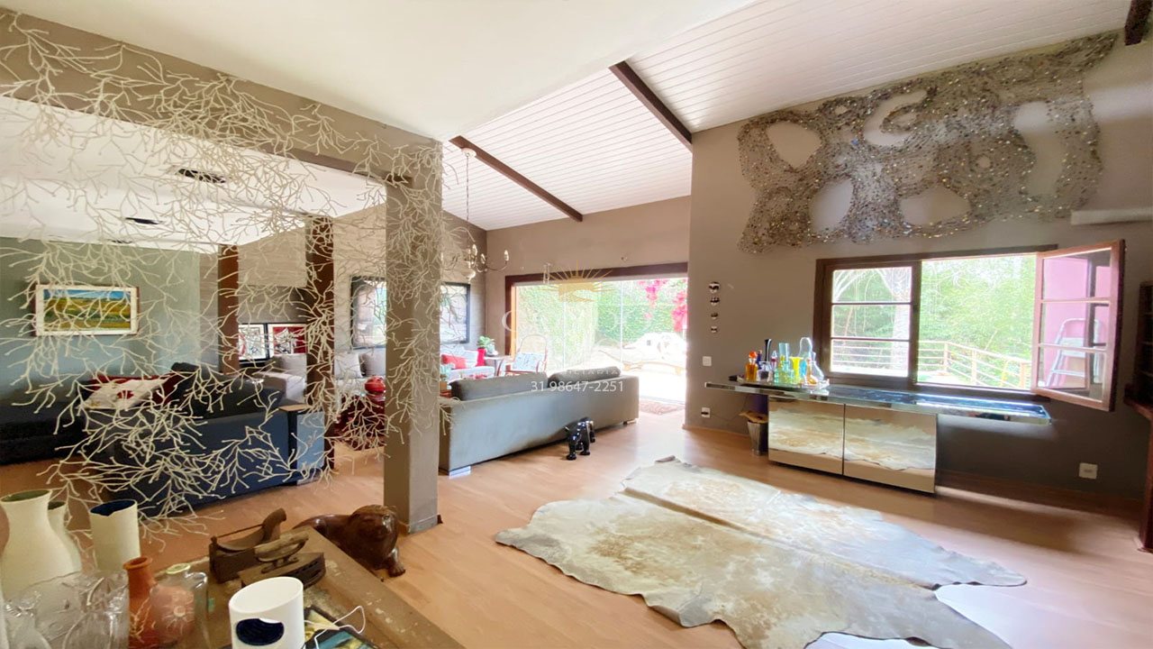 Excelente casa de 400m² com vista definitiva e fundo para área verde. Construida em um lote de 2.200m² no Residencial Arvoredo, o imóvel conta com 4 suítes, sendo 2 masters, escritório com mezanino, atelier e 1 casa de apoio.